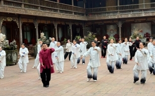 (简橙太极导师薛精医华带领学员练习养生太极,受访者供图)